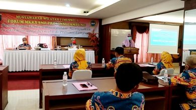 Sekretaris Disdikbud Bandar Lampung, Hj. Eka Afriana (berdiri), membuka kegiatan Muswil Forum MKKS SMP Provinsi Lampung, di Begadang Resto Telukbetung,…