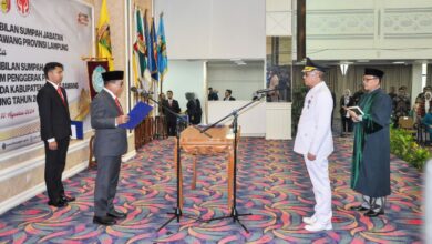ISTIMEWA SMARTNEWS.ID – Penjabat (Pj) Gubernur Lampung Samsudin melantik sekaligus mengambil sumpah jabatan Ferli Yuledi sebagai Pj Bupati Tulang Bawang,…