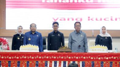 ISTIMEWA SMARTNEWS.ID – Penjabat (Pj) Gubernur Lampung Samsudin dan Ketua DPRD Provinsi Lampung Mingrum Gumay menandatangani Rancangan Peraturan Daerah (Raperda)…