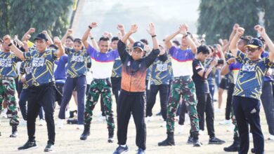 Pj Gubernur Samsudin dan KONI Lampung Senam Bersama Seluruh Atlet PON