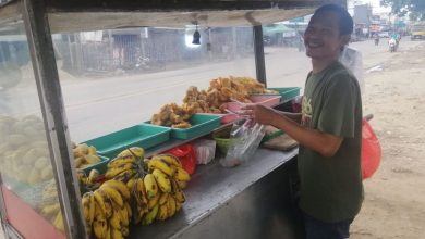 Suyono (44), penjual gorengan di Pasar Unit 2 Kecamatan Banjaragung, Kabupaten Tulangbawang, Provinsi Lampung, saat melayani pembeli. ISTIMEWA SMARTNEWS.ID —…