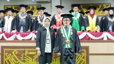 ISTIMEWA SMARTNEWS.ID – Rektor Universitas Lampung (Unila) Prof. Dr. Ir. Lusmeilia Afriani, D.E.A., I.P.M, hadiri pengukuhan guru besar pertama Politeknik…