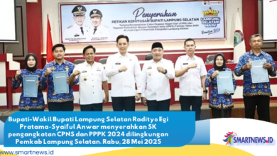 SMARTNEWS.ID — Bupati Lampung Selatan, Radityo Egi Pratama (Egi), secara resmi menyerahkan Surat Keputusan (SK) Bupati Lampung Selatan tentang Pengangkatan…