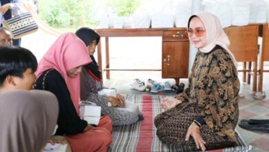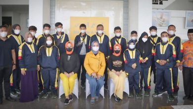 Ketua Soina Lampung Riana Sari Arinal, mengabadikan momen bersama kontingen Soina yang akan mengikuti Pesonas 2022, di Mahan Agung, Kompleks…