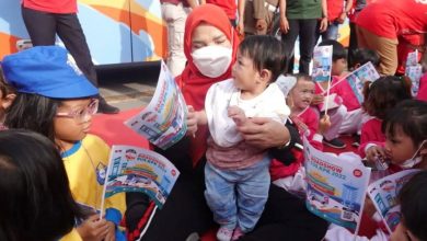 Pemkot Bandar Lampung bersama KPK RI mengenalkan sembilan nilai integritas kepada anak-anak usia dini saat Roadshow Bus KPK di Taman…
