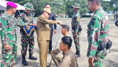 Di Markas Brigif 4 Marinir Pesawaran, Pj Bupati Mesuji Cukur Rambut Satpol PP