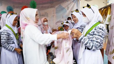 Kepala SMAN 10 Neng Rosiyati, S.Pd., M.M (dua kanan) didampingi Wakilnya Drs. Sularno (tiga kiri), serta Bhabinkamtibmas Tanjung Gading, Aiptu…