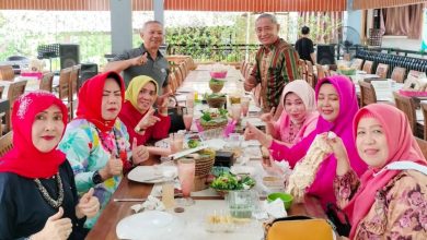Sejumlah mantan Kepala SMP Bandar Lampung, saat melakukan halal bihalal, di RM Pindang Uwo Pramuka, Bandar Lampung, Sabtu, 13 Mei…