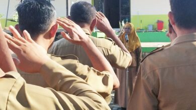 Kepala Disdikbud Bandar Lampung, Hj. Eka Afriana, S.Pd, saat memimpin apel di lapangan dinas setempat, Senin, 8 Juli 2024. ISTIMEWA SMARTNEWS.ID…