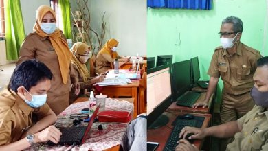 Kiri – Kepala SMPN 36 Yulva Roza, M.Pd, melihat secara langsung aktivitas guru saat LUS dan PTS di sekolah. Kanan…