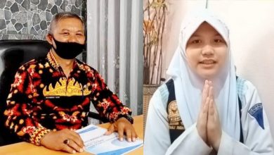 Kepala SMPN 33 Muhammad Yusri, S.Pd., M.M (kiri) dan Rifda Salwa Triyana, ketua OSIS terpilih SMPN 33, masa bakti 2021.…