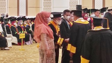 Kepala SMPN 14 Bandar Lampung Abdul Khanif, M.Pd, saat menerima penghargaan sebagai lulusan terbaik Program Pascasarjana, Program Studi Pendidikan Bahasa…