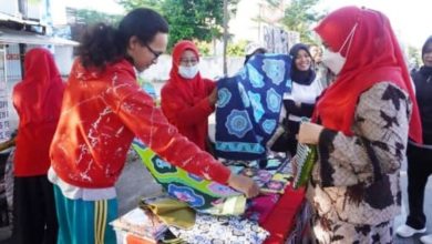Wali Kota Bandar Lampung, Eva Dwiana, saat membeli sejumlah kain batik, di Taman UMKM Bung Karno, di Jalan Gatot Subroto,…
