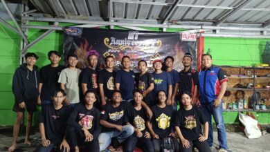 Foto bersama saat merayakan HUT ke-21 VLC di mabes VLC di Aa’Auto Details, Bandar Lampung, Sabtu, 31 Mei 2025. DOK…