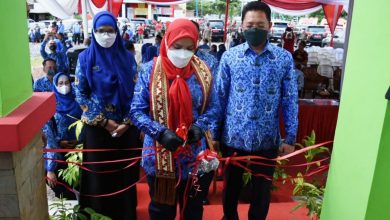 Wali Kota Bandar Lampung Eva Dwiana, menggunting pita sebagai tanda diresmikannya tiga gedung baru sekolah, yakni SMPN 42, SMPN 43,…