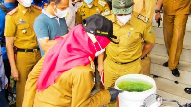 Wali Kota Bandar Lampung Eva Dwiana menyesalkan fasilitas Protokol Kesehatan Covid-19, cuci tangan, milik salah satu mal di Tanjungkarang Pusat,…