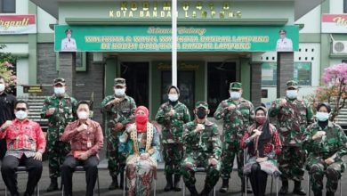 Wali Kota Bandar Lampung Eva Dwiana didampingi Asisten I Pemkot Sukarma Wijaya, saat mengabadikan momen bersama Dandim 0410/KBL Kolonel (Inf)…