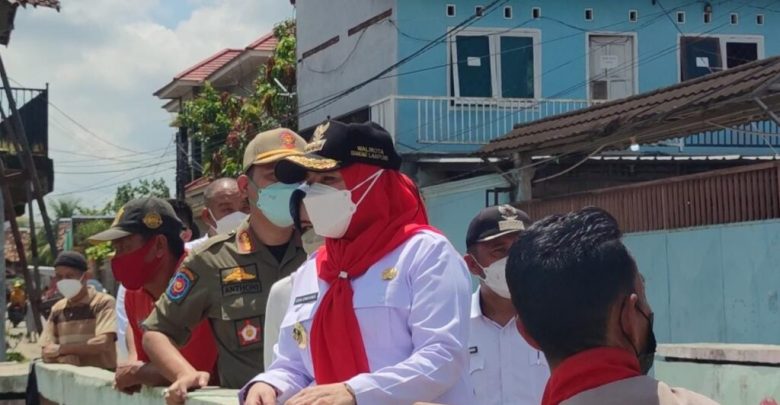 SMARTNEWS.ID – Walikota Bandar Lampung Eva Dwiana, meninjau lokasi banjir yang terjadi pada kemarin sore, di Kelurahan Kalibalau Kencana, Kecamatan Kedamaian, Eva berjanji akan memperlebar sungai serta drainase yang ada di Kedamaian, Rabu (16/3/2022).