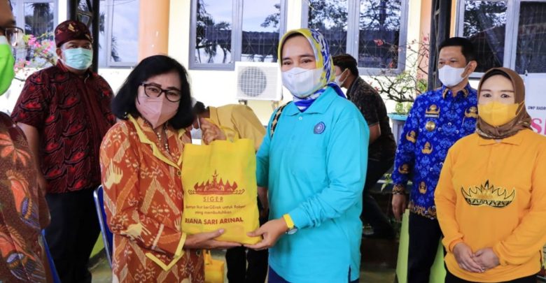 Pada kegiatan Siger (Saatnya Ikut Bergerak Untuk Rakyat yang Membutuhkan), kali ini Riana Sari Arinal bersama pengurus TP PKK Provinsi Lampung, DWP Provinsi Lampung, dan DWP Badan Kesbangpol, Dinas Perumahan, Kawasan Permukiman dan Cipta Karya, DWP Dinas Ketahanan Pangan, Tanaman Pangan, dan Hortikultura, serta Dinas Bina Marga dan Bina Konstruksi Provinsi Lampung membagikan bantuan berupa Beras dan berbagai bahan pokok makanan seperti minyak goreng, terigu, sayur-mayur dan lain sebagainya