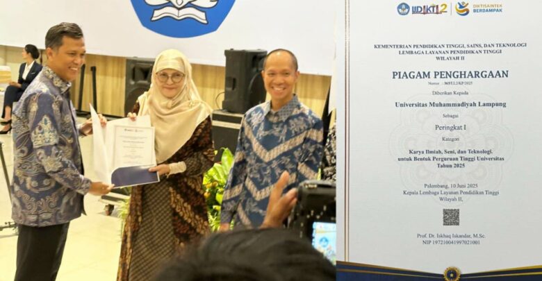 Kepala LLDIKTI Wilayah II Prof. Iskhaq mengapresiasi dan menyampaikan ucapan selamat atas terobosan dan pencapaian yang diraih oleh Universitas Muhammadiyah Lampung. Sehingga pada tahun 2025 meraih peringkat I Versi LLDIKTI Wilayah II dengan Kategori Karya Ilmiah, Seni, Teknologi, untuk bentuk Perguruan Tinggi Universitas.