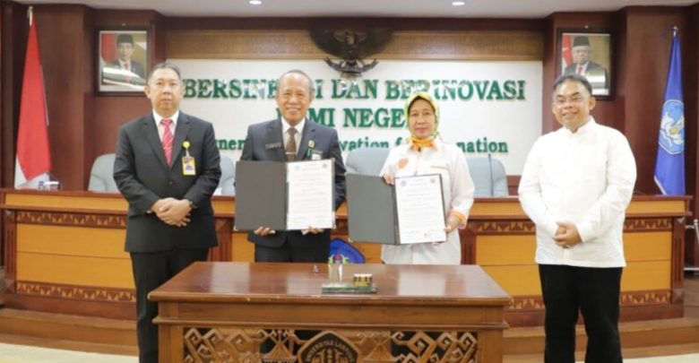Penandatanganan nota kesepahaman dan perjanjian kerja sama dilakukan Rektor Unila Prof. Dr. Ir. Lusmeilia Afriani, D.E.A., I.P.M dan Rektor UPGRIP Dr. Bukman Lian, M.M., M.Si., CIQaR, di ruang sidang utama lantai dua Rektorat Unila, Rabu, 3 Mei 2023.