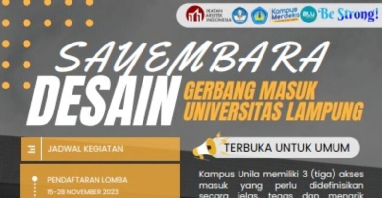 SMARTNEWS.ID – Universitas Lampung (Unila) bersama Ikatan Arsitek Indonesia (IAI) mengumumkan sayembara desain untuk Gerbang Universitas Lampung.