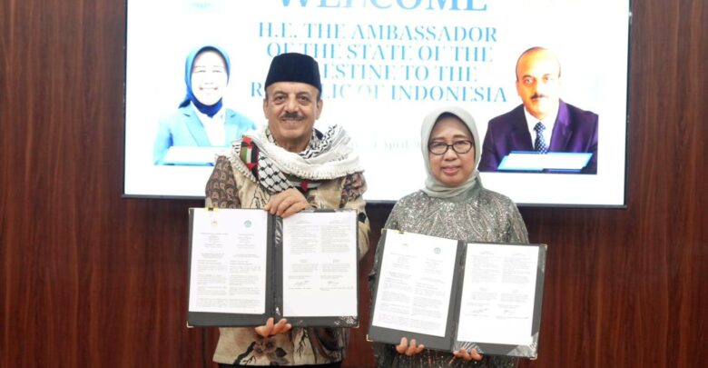 Penandatanganan dilakukan Duta Besar Negara Palestina untuk Republik Indonesia, H.E. Mr. Abdalfatah A.K. Alsattari, bersama Rektor Unila Prof. Dr. Ir. Lusmeilia Afriani, D.E.A., IPM., ASEAN Eng.