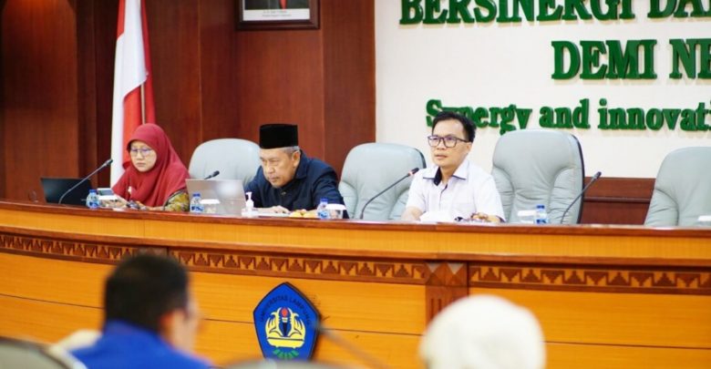 Kegiatan yang dilaksanakan di ruang sidang utama rektorat lantai dua ini dihadiri juga para dekan di lingkungan Unila, direktur pascasarjana, ketua lembaga, dosen dan tim task force dari LP3M Unila.