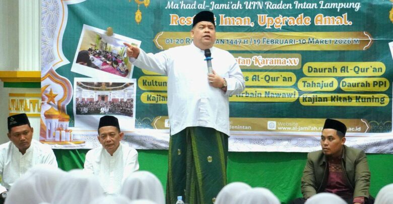 SMARTNEWS.ID – Program Kampus Ramadan (Karama) XV yang digelar Ma’had Al Jami’ah Universitas Islam Negeri (UIN) Raden Intan Lampung resmi ditutup pada malam Nuzulul Quran, 17 Ramadan 1447 H, di Masjid Safinatul Ulum, Jumat, 6 Maret 2026. Kegiatan yang telah berlangsung selama 18 hari itu ditutup oleh Wakil Rektor II UIN Raden Intan Lampung, Prof. Dr. Safari, M.Sos.I, mewakili Rektor menjelang waktu berbuka puasa. Dalam sambutannya, Safari menyampaikan sejumlah pesan kepada para mahasantri agar membangun kebiasaan (habit) yang baik sebagaimana tradisi santri di pesantren. Ia mendorong para mahasantri untuk membiasakan diri belajar dan membaca buku atau kitab. Menurutnya, semangat mencari ilmu harus menjadi kebiasaan yang terus dipelihara. “Habit anak pesantren itu belajar, membaca buku atau kitab. Lingkungannya juga dekat dengan masjid,” ujarnya. Prof. Safari juga berpesan agar budaya santri terus dikembangkan di lingkungan Ma’had Al Jami’ah, disertai dengan pembentukan akhlakul karimah dalam kehidupan sehari-hari. Sementara itu, Mudir Ma’had Al Jami’ah UIN Raden Intan Lampung, Dr. Ahmad Basyori, menyampaikan bahwa Karama XV telah berlangsung selama 18 hari dengan berbagai kegiatan yang bertujuan memakmurkan masjid. Menurutnya, kegiatan tersebut menjadi bagian dari upaya pembinaan spiritual mahasantri selama bulan Ramadan. Kegiatan ini untuk meramaikan dan memakmurkan masjid. Orang-orang yang memakmurkan masjid adalah orang yang beriman kepada Allah,” kata Ahmad Basyori. Ia menambahkan, Karama merupakan program rutin tahunan Ma’had Al Jami’ah. Ia berharap kegiatan tersebut membawa keberkahan, khususnya bagi UIN Raden Intan Lampung dan juga Indonesia. Di akhir acara, Wakil Rektor II bersama Mudir Ma’had Al Jami’ah serta Wakil Dekan II Fakultas Syariah, Dr. Relit, memberikan apresiasi kepada para mahasantri yang meraih prestasi selama kegiatan Karama XV. Beberapa kategori penghargaan yang diumumkan antara lain: Tadarus Terbanyak Asrama 1 Putri: Vidya Sara Hida Hasyim (11 kali khatam) Asrama 1 Putra: Muhammad Faisal Apriansyah (5 kali khatam) Asrama 2 Putri: Nayla Nasywa Abidah (2 kali khatam) Asrama 2 Putra: Irham Yumiza (1 kali khatam) Kultum Terbaik Asrama 1: Suryadi Asrama 2: Andika Kurnia, Afifah Khoirunnisa, Lili Yusefa Buku Kultum Terbaik Asrama 1: Anggun Rizkiana Asrama 2: Vera Diana Sabila Imam Terbaik Asrama 1: Farhan Akkbar Asrama 2: M. Ikbal Fahrurizal Bilal Terbaik Asrama 1: Fajri Fernandi Asrama 2: Nauvaldo Firos Cerpen Terbaik: Salwa Wahyuningtias Video Kreatif Terbaik Asrama 1: Anisa Nur Fadila Santri Teladan Asrama 1: Meila Tiffany Azzahra Asrama 2: Afif Selain itu, terpisah, terdapat pula informasi mengenai salah satu pengurus Ma’had Al Jami’ah, Nur Zamro’atus Solehah yang juga mahasiswa Pascasarjana UIN Raden Intan Lampung, berhasil mengkhatamkan 15 juz Al-Qur’an. Karama XV sendiri berlangsung sejak 19 Februari hingga 10 Maret 2026 dengan mengusung tema “Restart Iman, Upgrade Amal.” Program tahunan yang memasuki tahun ke-15 ini menjadi bagian dari pembinaan intensif mahasantri selama Ramadan 1447 H.Kegiatan digelar di Asrama 1, Masjid Safinatul Ulum, serta Asrama 2 di Prasanti dengan fokus pada penguatan spiritualitas, peningkatan kualitas ibadah, serta pembentukan karakter Islami. Selama pelaksanaannya, berbagai kegiatan digelar, di antaranya buka puasa bersama, kultum, salat tarawih berjamaah, kajian tematik, tadarus Al-Qur’an, kajian kitab Arbain Nawawi, kajian kitab kuning, daurah Al-Qur’an, tahajud, serta daurah PPI. (***)