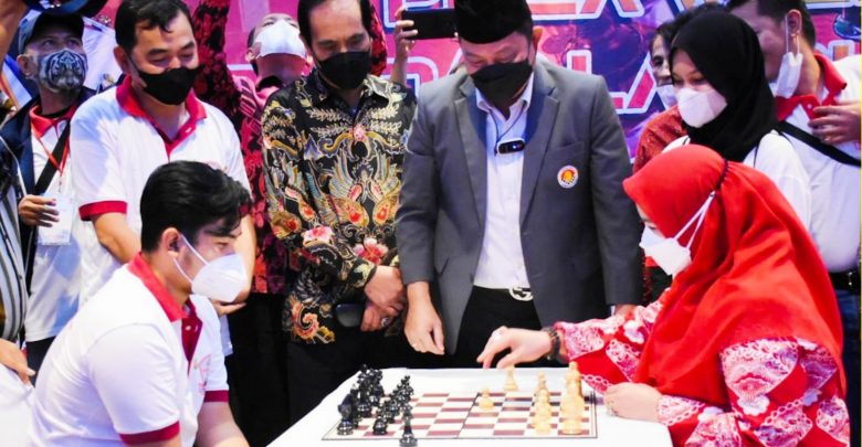 SMARTNEWS.ID – Wali Kota Bandar Lampung Eva Dwiana membuka turnamen catur tingkat nasional memperebutkan Piala Wali Kota Bandar Lampung 2022 ,di Hotel Sheraton Bandar Lampung, Minggu (23/1/2022).