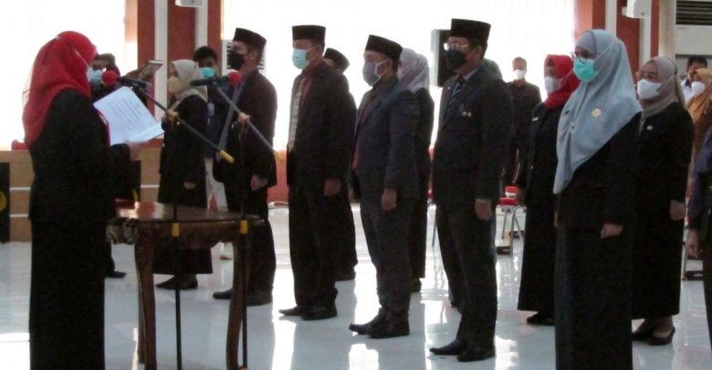 Pelantikan sekaligus pengambilan sumpah jabatan yang digelar di Gedung Semergow Kantor Pemerintah Kota Bandar Lampung, ini dipimpin langsung oleh Wali Kota Bandar Lampung Eva Dwiana.