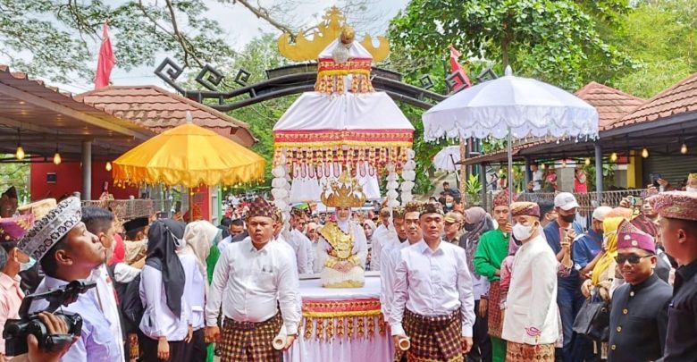 Prosesi angkon muakhi yang digelar di Rumah Adat Kebandaran Marga Balak di Kelurahan Negeri Olok Gading Kecamatan Telukbetung Barat dan dilanjutkan di Kawasan Wisata Sumur Putri Keluruhan Sumur Putri, Kecamatan Telukbetung Selatan, berlangsung khidmat.