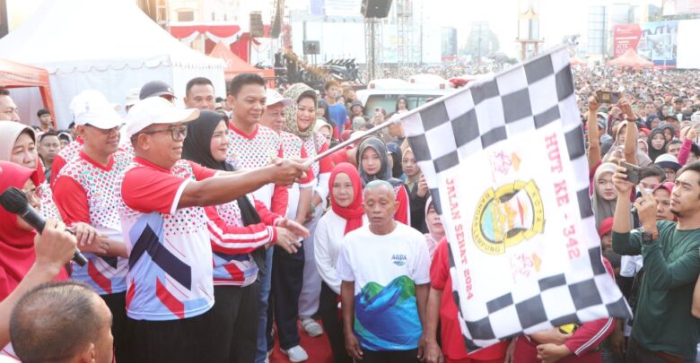 SMARTNEWS.ID – Wali Kota Bandar Lampung Eva Dwiana melepas ribuan peserta jalan sehat HUT ke-342 Kota Bandar Lampung.