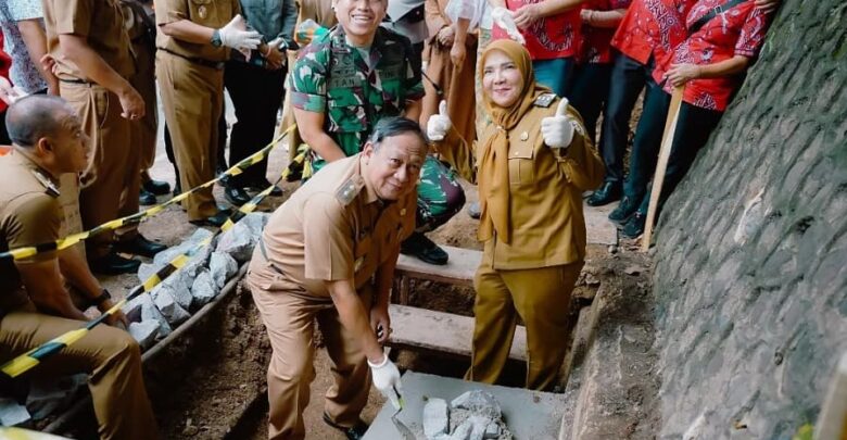 Wali Kota Eva Dwiana Letak Batu Pertama Pembangunan Tugu Pagoda dan Gapura Teluk Betung Town