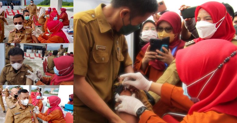 Kick off vaksinasi booster diawali oleh ASN di lingkungan Pemkot Bandar Lampung. Sedikitnya 350 dosis vaksin Pfizer disiapkan untuk vaksinasi booster.