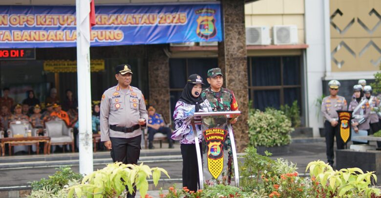 SMARTNEWS.ID – Wali Kota Bandar Lampung Eva Dwiana memimpin apel gelar pasukan Operasi Ketupat Krakatau 2025 di halaman Polresta Bandar Lampung, Kamis 20 Maret 2025.