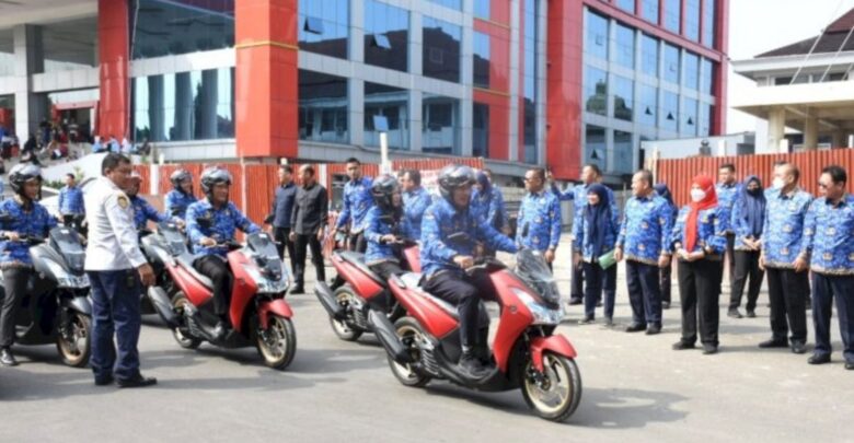 SMARTNEWS.ID – Wali Kota Bandar Lampung, Eva Dwiana, pimpin serah terima kendaraan dinas operasional roda dua bagi 126 lurah se-Kota Bandar Lampung, Senin, 17 Juli 2023.