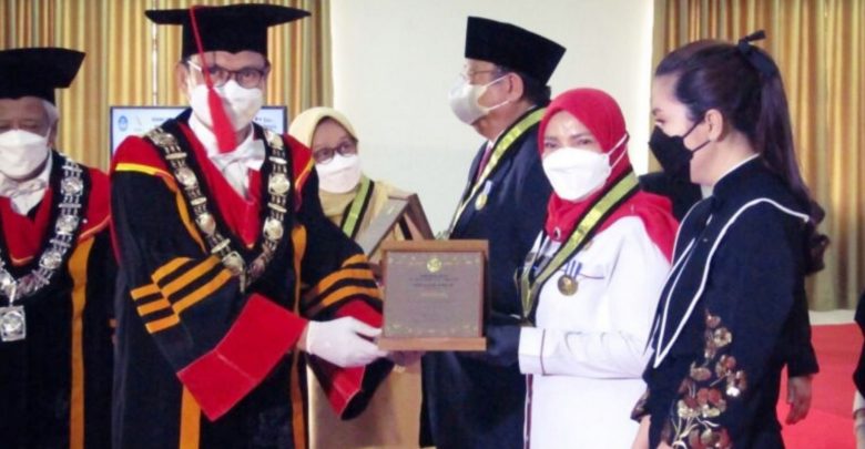 SMARTNEWS.ID – Wali Kota Bandar Lampung Eva Dwiana, menerima penghargaan dari Institut Teknologi Sumatera (Itera) pada acara Dies Natalis Ke-7 Itera, Rabu (6/10/2021).