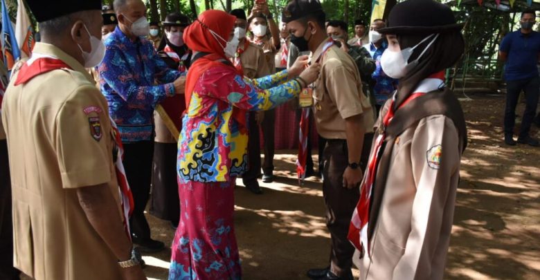 SMARTNEWS.ID – Walikota Bandar Lampung Eva Dwiana sekaligus Ketua Majelis Pembimbing Cabang (Mabicab) Gerakan Pramuka Kota Bandar Lampung membuka Kursus Pembina Pramuka Mahir Tingkat Dasar (PMD) Gerakan Pramuka STKIP PGRI Bandar Lampung, Sabtu (4/6/2022), di Samar Scout Camp, Rajabasa Bandar Lampung.