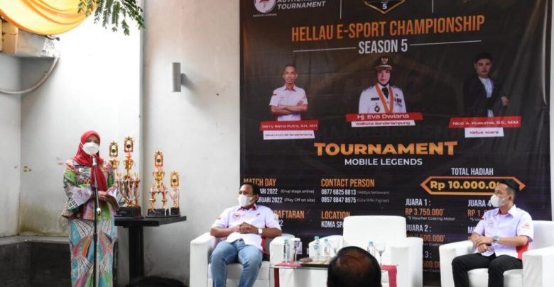 SMARTNEWS.ID – Walikota Bandar Lampung Eva Dwiana membuka Turnamen Hellau E-Sport Championship (HEC) Season 5 di Kafe Koma Space, Rajabasa, Jumat (28/1/2022).