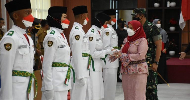 SMARTNEWS.ID – Walikota Bandar Lampung, Eva Dwiana mengukuhkan 33 Pasukan Pengibar Duplikat Bendera Pusaka (PASKIBRAKA) di Gedung Semergou, Sekretariat Pemkot Bandar Lampung, Selasa (16/8/2022).