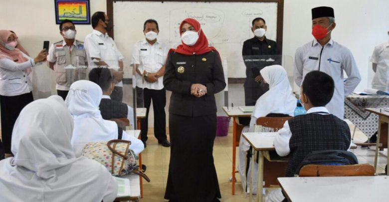 SMARTNEWS.ID – Walikota Bandar Lampung Eva Dwiana Tinjau Pembelajaran Tatap Muka (PTM) 100 Persen di 4 sekolahan yang ada di Bandar Lampung. Yakni, SDN 1 Tanjung Agung, SMPN 5 Bandar Lampung, SMPN 33 Bandar Lampung, dan SMPN 2 Bandar Lampung, Rabu (11/05/2022).