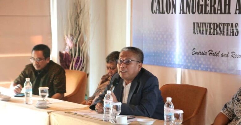 Dr. Habibullah dalam sambutannya menyampaikan, penyelenggaraan kegiatan penganugerahan ini diberikan kepada dosen yang telah menghasilkan karya inovatif bidang pembelajaran, bidang penelitian, dan pengabdian kepada masyarakat, serta menginspirasi teman sejawat dan memberi kebermanfaatan bagi pembangunan nasional.