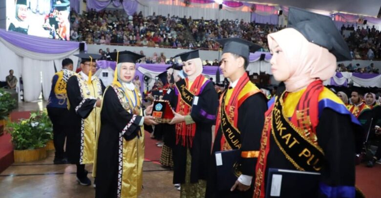 Wakil Rektor Bidang Akademik Dr. Eng. Suripto Dwi Yuwono, M.T., melaporkan, lulusan terbaik dari setiap jenjang program, yaitu lulusan terbaik kesatu program doktor diraih Rini Fathonah, S-3 Ilmu Hukum dengan total skor 3.62, lulusan terbaik kedua Rias Tusianah, S-3 Pendidikan dengan total skor 284.