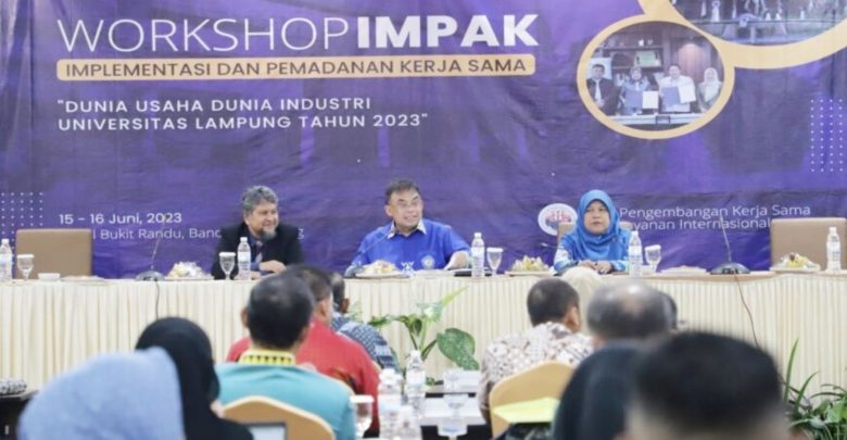 SMARTNEWS.ID – Universitas Lampung menggelar Workshop Implementasi dan Pemadanan Kerja sama (IMPAK) Dunia Usaha dan Dunia Industri (DUDI) Universitas Lampung tahun 2023 di Bukit Randu, Bandar Lampung, Kamis, 15 Juni 2023.