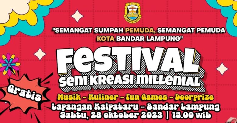 SMARTNEWS.ID – Pemerintah Kota Bandar Lampung, akan menggelar Festival Seni Kreasi Milenial, di Lapangan Kalpataru, Kemiling Bandar Lampung, Sabtu malam, 28 Oktober 2023.